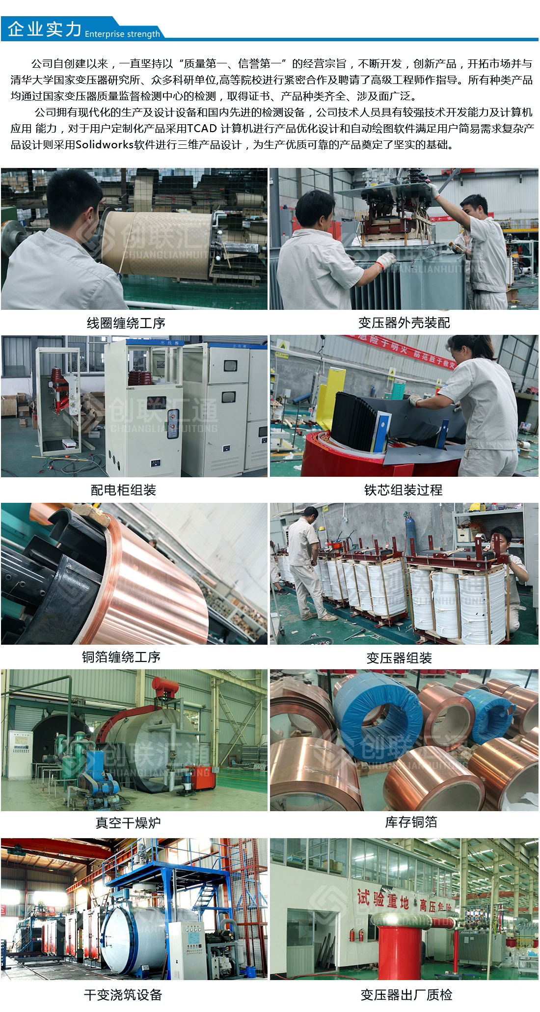答 創(chuàng)聯(lián)匯通主營產(chǎn)品有:S11(13)、S20(22)新能效及SH15系列10KV級~110KV級油浸式電力變壓器、有載調(diào)壓電力變壓器、非晶合金變壓器、SC(B)10 (13)、SG(B)10(13)及SC(B)14(18)新能效系列干式變壓器、開關(guān)柜及組合式變壓器、箱式變電站及防竊電、礦用、整流、電爐等特殊電力變壓器。產(chǎn)品廣泛用于電力、核電站、交通、礦山、冶金、建...